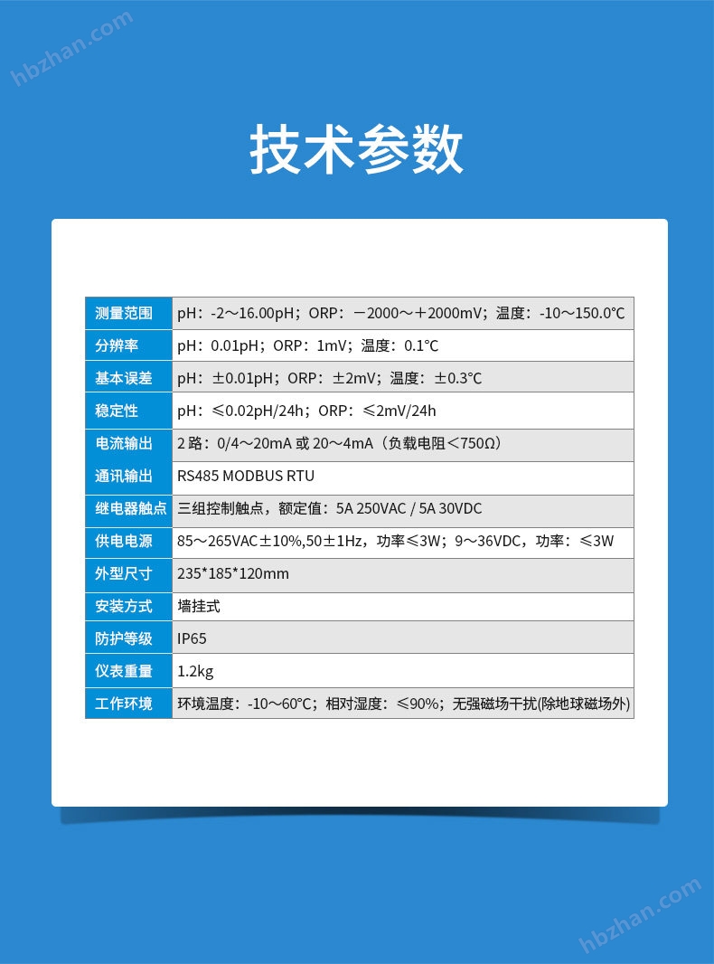pH:≤0.01pH/24h;ORP: ≤1mV/24h;