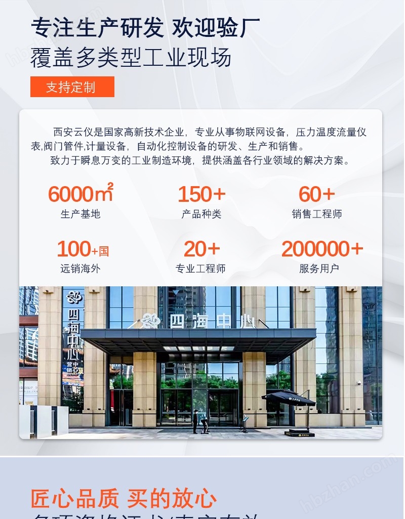 云儀儀器儀表公司占地8000平方米,建筑面積4600平方米,固定資產(chǎn)1億元,主要生產(chǎn)設(shè)備與檢測儀器從美國引進(jìn),企業(yè)擁有多項自主知識產(chǎn)權(quán)。多年的生產(chǎn)經(jīng)驗、雄厚的技術(shù)力量,高素質(zhì)的員工隊伍,確保產(chǎn)品質(zhì)量穩(wěn)定、性能指標(biāo)先進(jìn)、運行安全可靠。