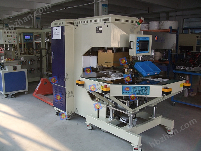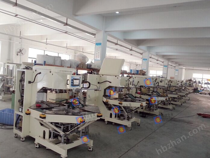 1、機(jī)頭板設(shè)計(jì)為C型,自動(dòng)轉(zhuǎn)盤四工位設(shè)計(jì)。