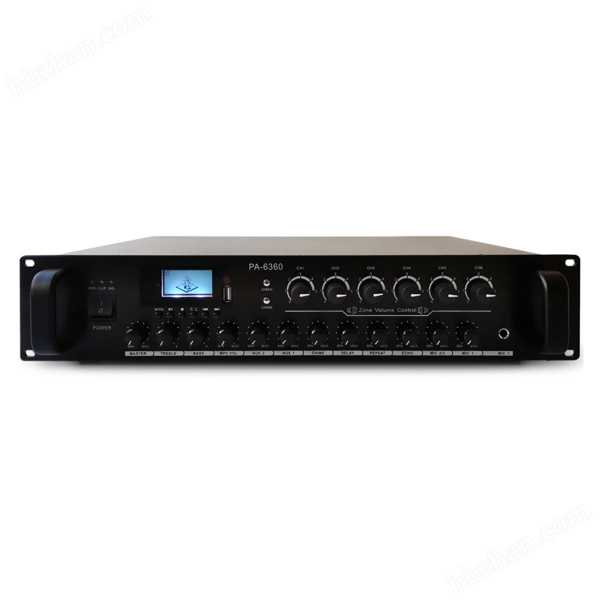 6.設有6路分區(qū)選擇輸出,每路分區(qū)輸出音量可獨立調(diào)節(jié),電壓輸出為 100V,75V、 50V、25V0V調(diào)節(jié)功率可選130---660W。