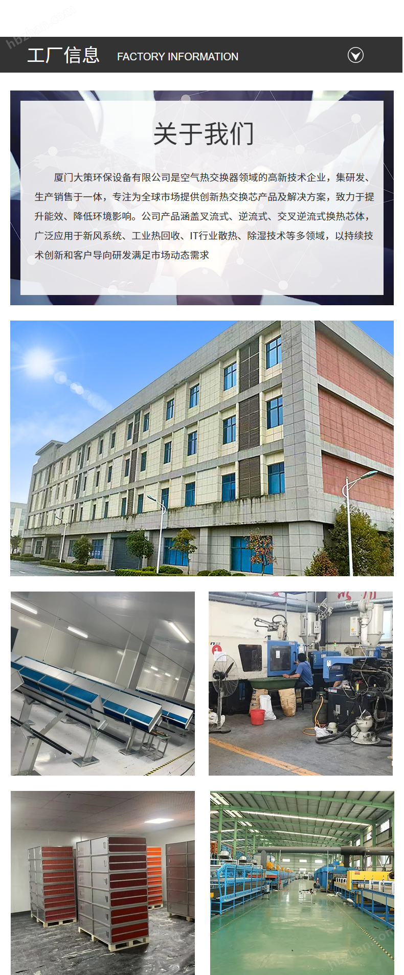 廈門大策環(huán)保設(shè)備有限公司,是一家在空氣熱交換器領(lǐng)域具有深厚技術(shù)積累的高新技術(shù)企業(yè)。公司集研發(fā)、生產(chǎn)、銷售于一體,專注于為全球市場(chǎng)提供創(chuàng)新的熱交換芯產(chǎn)品和解決方案,致力于提升能源效率,降低環(huán)境影響。