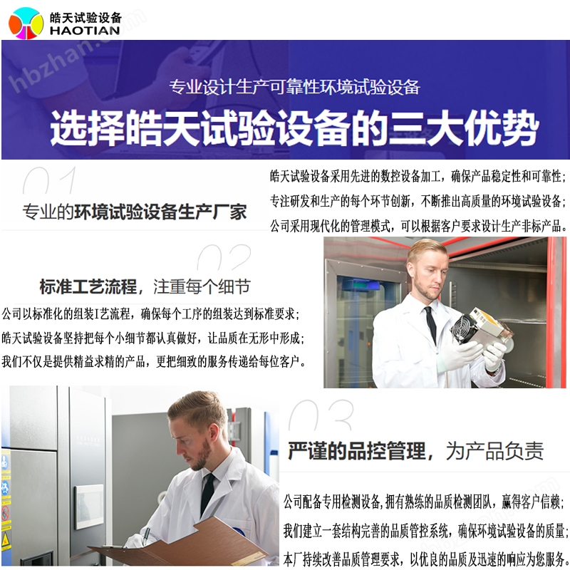 皓天自創(chuàng)立以來,相繼獲認(rèn)證為中國儀器儀表行業(yè)質(zhì)量可信品牌、中國儀器儀表行業(yè)自主創(chuàng)新品牌、中國科技型先鋒企業(yè)榮譽(yù)、廣東守合同重信用企業(yè)及國家是東莞市納稅重點(diǎn)企業(yè)。且經(jīng)過多年發(fā)展,皓天規(guī)模不斷擴(kuò)大,在全國各大樞紐城市均設(shè)有分公司,銷售及服務(wù)網(wǎng)絡(luò)覆蓋全國各地。憑借著公司的技術(shù)與完善的售后服務(wù),建立了ISO9001:2015質(zhì)量管理體系和ISO14001:2015環(huán)境管理體系。全力貫徹以“質(zhì)量求生存、以服務(wù)立信譽(yù)、以管理增效益、以創(chuàng)新造輝煌”的經(jīng)營方針,全面實(shí)施“用心服務(wù),追求顧客滿意,超越客戶期待”的陽光服務(wù)理念,樹立中國試驗(yàn)設(shè)備界的一面新的旗幟。憑著強(qiáng)大的技術(shù)研發(fā)團(tuán)隊(duì),眾多高素質(zhì)的管理人才的智能化制造設(shè)備,皓天研發(fā)生產(chǎn)了眾多擁有獨(dú)立知識產(chǎn)權(quán)的產(chǎn)品,獲得了國家頒發(fā)的多項(xiàng)證書。制造業(yè)的使命是一切以客戶的需求為導(dǎo)向,對客戶提供產(chǎn)品,以優(yōu)良的品質(zhì)及迅速負(fù)責(zé)的工作熱忱來獲取客戶的信賴和支持,依托健全的品質(zhì)管理體系,讓用戶滿意。