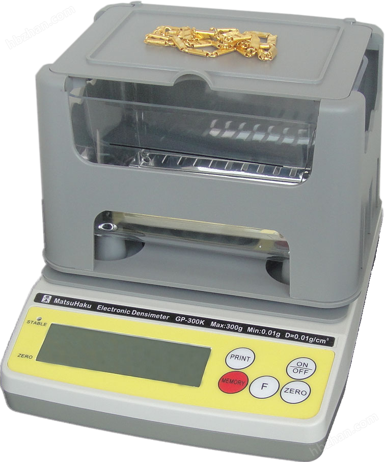 GP-300K/600K | 1、可快速、準確地測定貴金屬純度%、密度(比重)和黃金K數(shù),只需兩個秤重步驟; 2、測量之后不會留下任何痕跡和污染,無需使用硫酸溶液或測試標準樣品; 3、對鍍膜厚度>30μm以上的巴西火燒金也能輕而易舉的判定; 4、由特殊軟件設(shè)計,可直接循環(huán)顯示不同成份的黃金K數(shù)(含金銅銀、金銀、金銅),黃金純度%(含金銅銀、金銀、金銅); 5、依據(jù)市場需求,經(jīng)特殊的軟件設(shè)計,可由使用者自行設(shè)定黃金K數(shù)的上、下限,當測試黃金K數(shù)大于24K時,儀器將顯示HI;小于12K時,將顯示LO,以更直觀、更快速的方式鑒別黃金真?zhèn)危?br /> 6、具有混合比功能,可測試其它貴金屬合金的混合比例。如:白金、銀、鈀、銅、銠…等; 7、采用一體成形的透明大水槽(尺寸:15cm×10cm×9cm),水槽使用特殊材質(zhì)開模成形,不僅抗磨、耐腐蝕,而且不易摔破,同時也很美觀,可極大方便用戶的使用; 8、采用輕質(zhì)、細條、不銹鋼吊欄線設(shè)計,可極大降低因吊欄線浮力所造成的誤差; 9、不能測試鑲有寶石、空心的樣品??僧旊娮犹炱绞褂谩?br /> 10、具有標準RS-232接口,可輕易與電腦、打印機相連接。 |