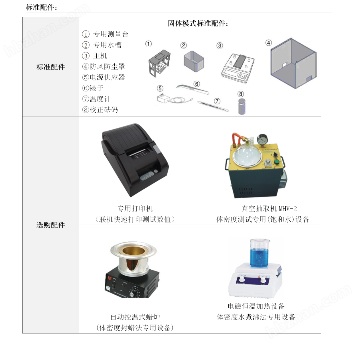 MH-300C/600C![]() | 功能一:針對(duì)有孔隙吸水性的陶瓷產(chǎn)品,可直接讀取體密度(媒介法)、體密度(封蠟法)、視密度、濕密度、視孔隙度、吸水率。 功能二:針對(duì)不吸水的陶瓷產(chǎn)品,可直接讀取產(chǎn)品的密度。 功能三:針對(duì)粉體樣品,配置專用比重瓶,可直接讀取粉體真密度。 |