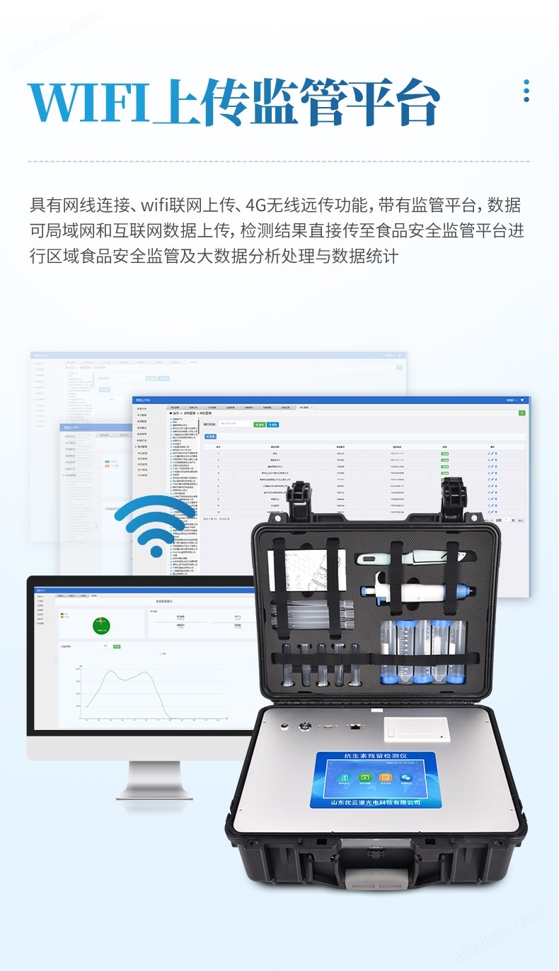 5、儀器帶有監(jiān)管平臺,數(shù)據(jù)可局域網(wǎng)和互聯(lián)網(wǎng)數(shù)據(jù)上傳,檢測結(jié)果直接傳至食品安全監(jiān)管平臺。進行區(qū)域食品安全監(jiān)管及大數(shù)據(jù)分析處理與數(shù)據(jù)統(tǒng)計,檢測區(qū)域食品安全長短期動態(tài),達到食品安全問題預(yù)估、預(yù)警