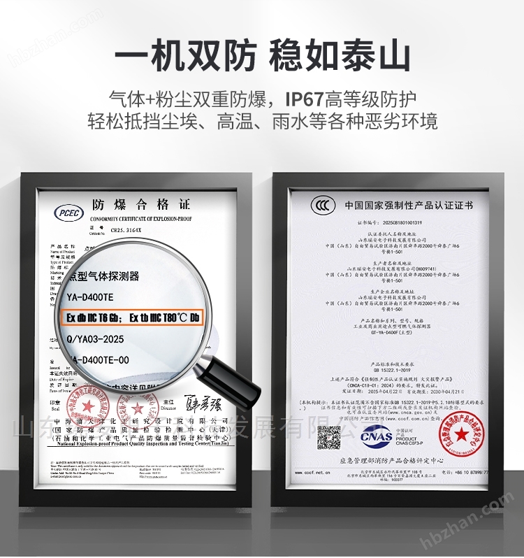6、雙環(huán)境防爆:符合氣體+粉塵防爆雙標準,IP66高等級防護,防止粉塵進入,雨水或短時間浸水不受影響