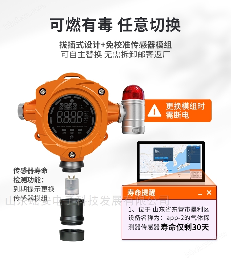 4、壽命自動檢測:傳感器壽命自動檢測,到期提示更換