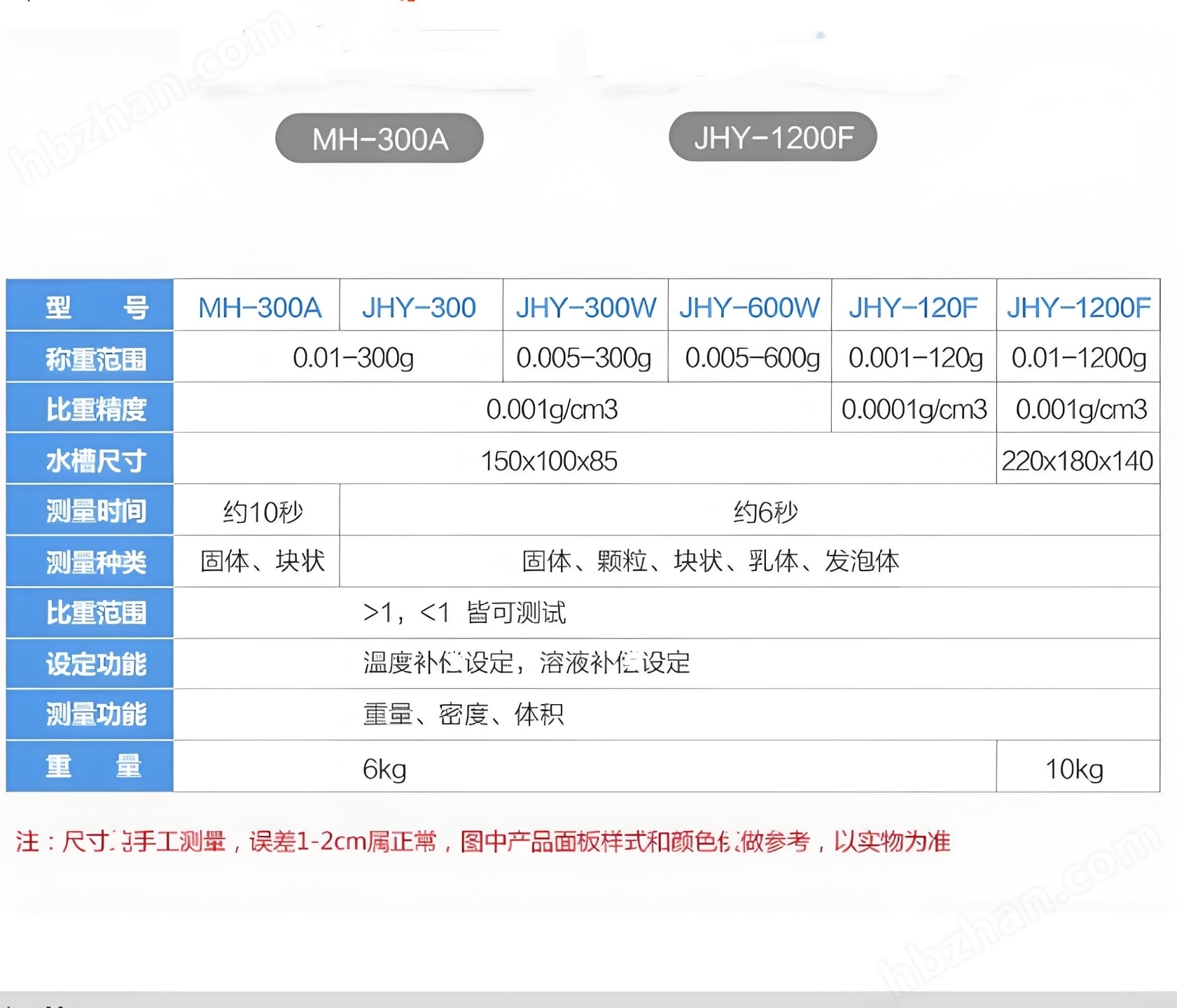 ●可準(zhǔn)確、測量不吸水產(chǎn)品和吸水產(chǎn)品的密度