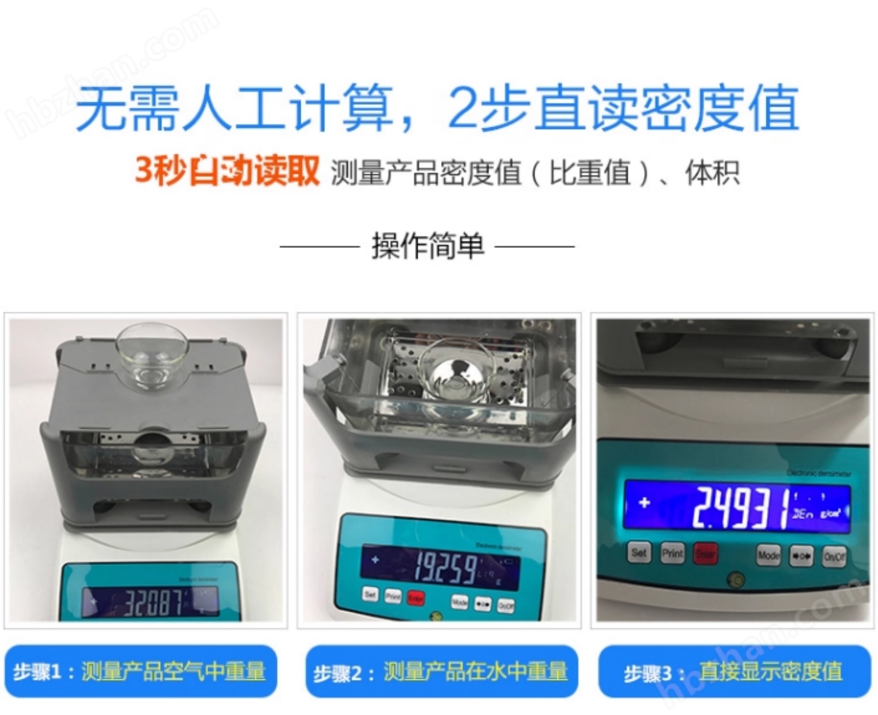 ●密度直讀,只需兩步直接讀取樣品的密度值