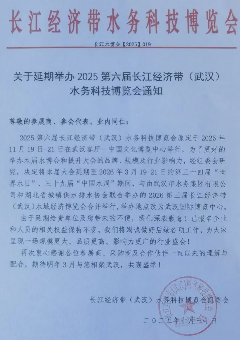 (1)2026長(zhǎng)江經(jīng)濟(jì)帶(武漢)鎮(zhèn)供水排水發(fā)展論壇