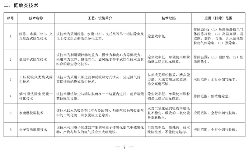 01 哪些治理設(shè)施和治理技術(shù)被列為低效失效類(lèi)?