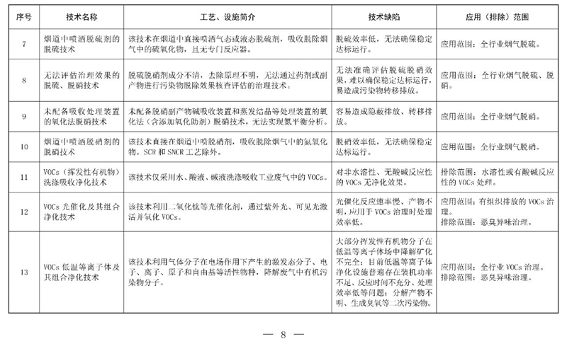 廢橡膠利用、廢塑料加工、木質(zhì)家具、玻璃制造、化工和電鍍等7個(gè)行業(yè)環(huán)境污染整治提升實(shí)施方案的通知》。其中提到要“全面淘汰低效VOCs治理設(shè)施”,淘汰的技術(shù)類(lèi)型主要是單一低溫等離子、光氧化、光催化(除異味治理外)、單一水噴淋吸收(除水溶性VOCs廢氣治理外)及上述技術(shù)的組合工藝。