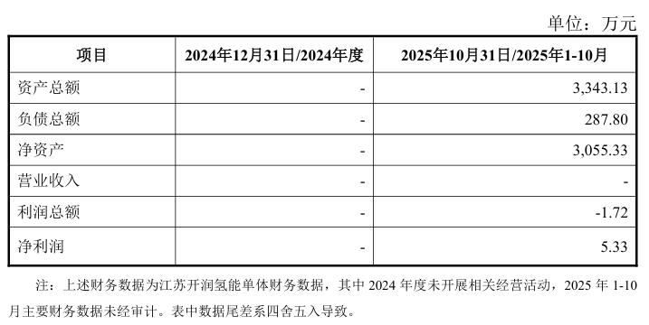 江蘇開潤氫能營業(yè)期限為2024年9月30日至無固定期限,注冊資本15,000萬元人民幣,經(jīng)營范圍涉及通用設(shè)備制造(不含特種設(shè)備制造);金屬制品研發(fā);合同能源管理;儲能技術(shù)服務(wù);機(jī)械設(shè)備研發(fā);機(jī)械設(shè)備銷售;通用設(shè)備修理;新型膜材料銷售;新材料技術(shù)研發(fā);電子專用設(shè)備銷售等。其最近一年及一期的主要財(cái)務(wù)指標(biāo)如下↓