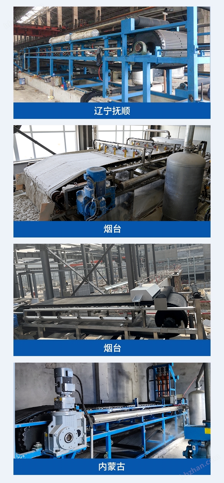 橡膠帶式真空過濾機具有過濾效率高、生產能力大、洗滌效果好、濾餅水分低、操作靈活,維修費用低等優(yōu)點。廣泛應用于冶金、礦山、化工、造紙、食品、制藥、環(huán)保等領域中的固液分離,尤其在煙氣脫硫中的石膏脫水方面( FGD )有良好的應用。