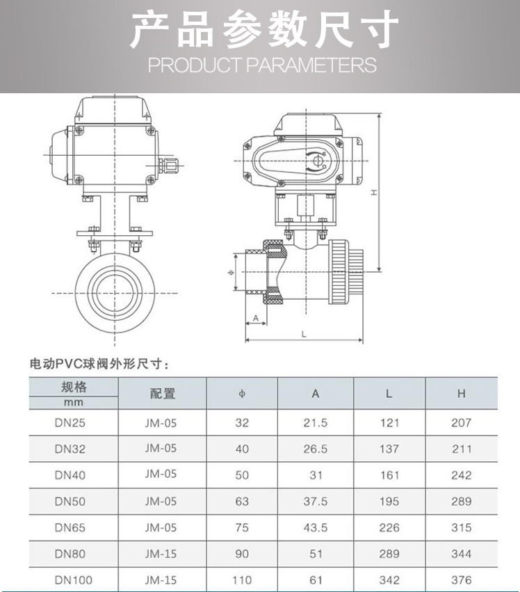 電動(dòng)執(zhí)行器技術(shù)參數(shù) | Q911S電動(dòng)UPVC球閥閥體參數(shù) | ||
