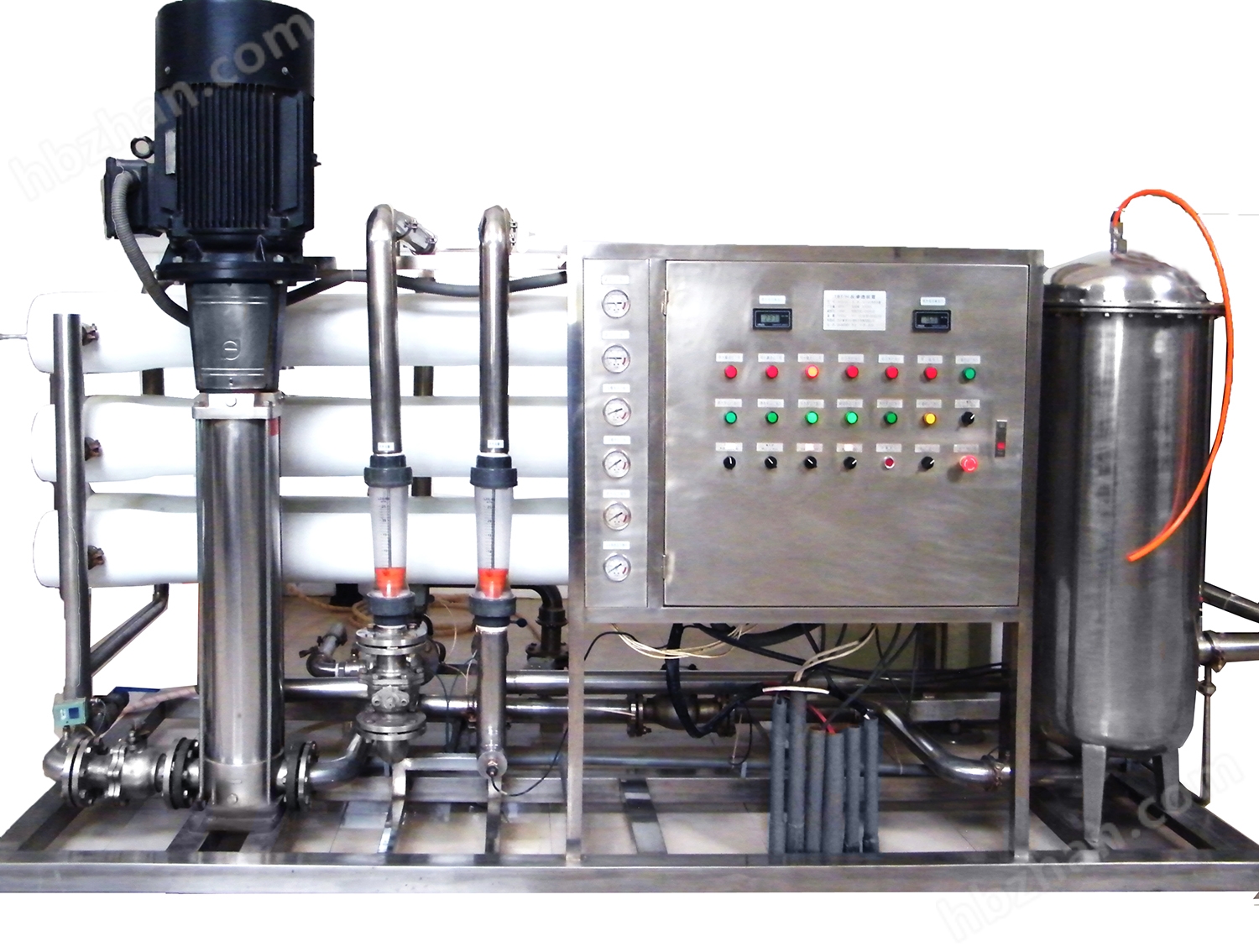 反滲透裝置主要包括多級高壓泵、反滲透膜元件、膜殼(壓力容器)、支架等組成。其主要作用是去除水中的雜質(zhì),使出水滿足使用要求。