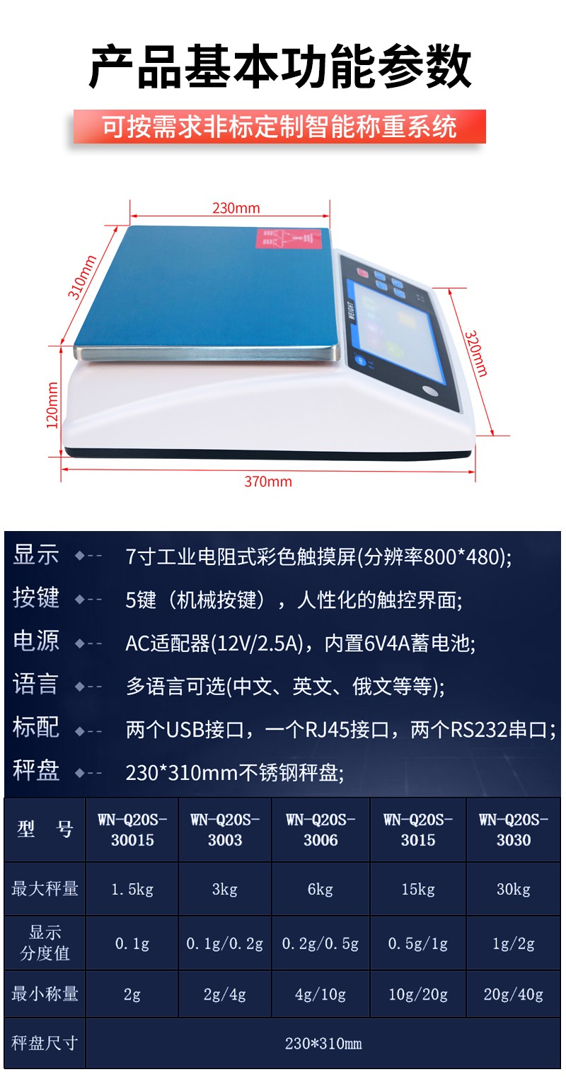 量程: 1.5kg/3kg/6kg/15kg/30kg可選