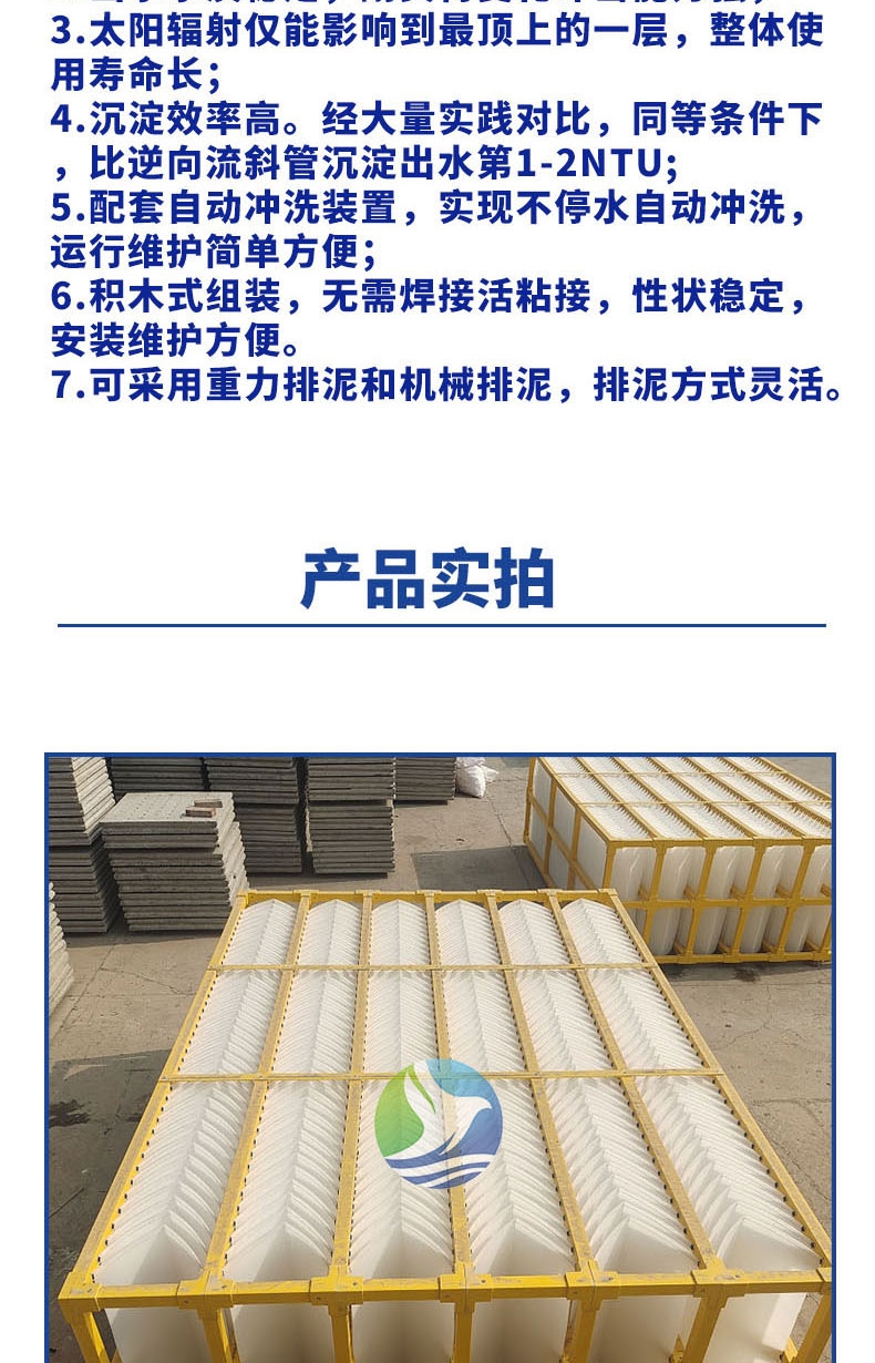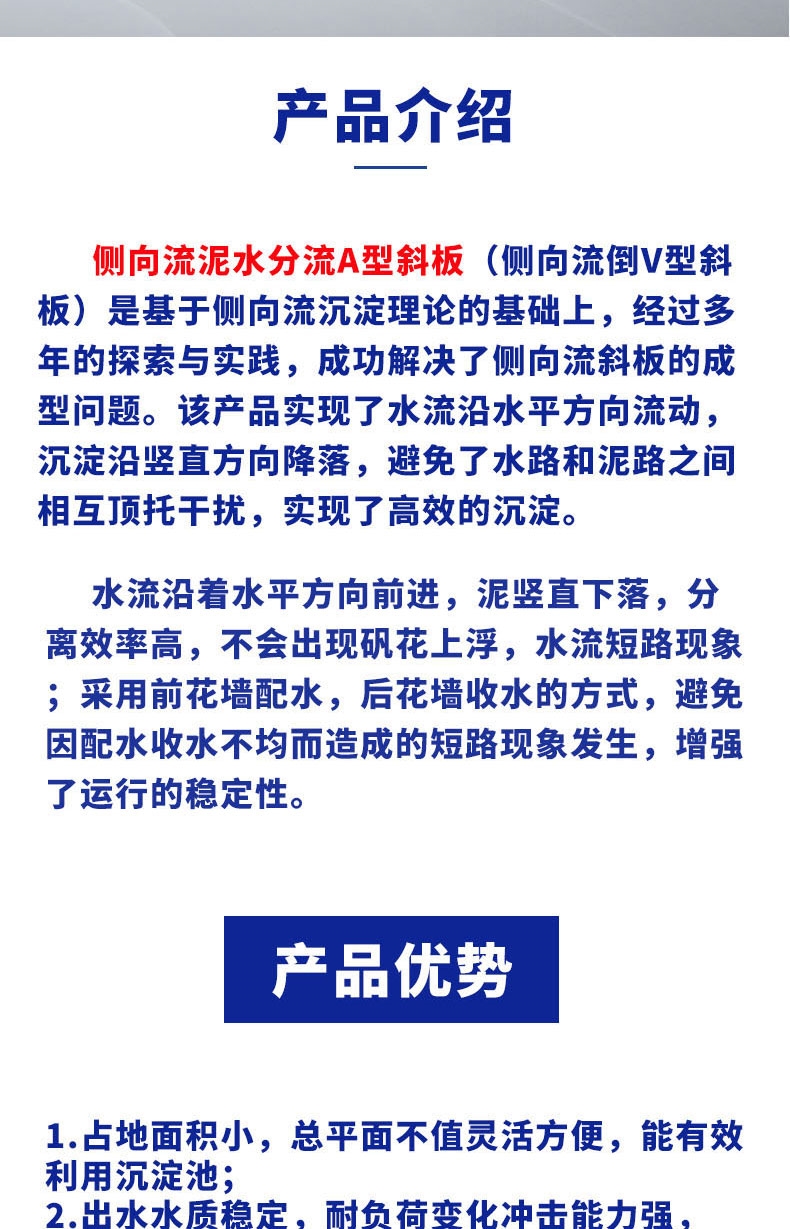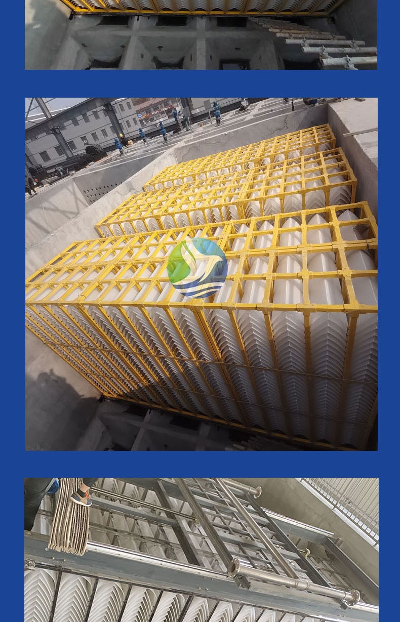 - 結(jié)構(gòu):由一組平行、傾斜的側(cè)向流板組成倒V型,底部有支撐結(jié)構(gòu),內(nèi)部水流流道通暢。
