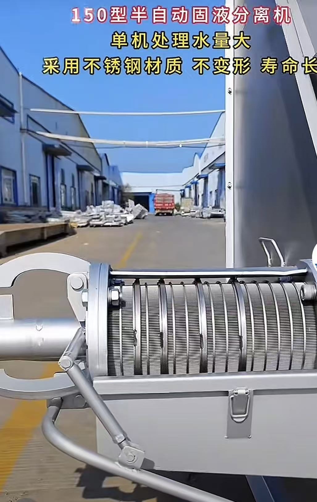 150型固液分離機,擠壓網(wǎng)功率低,能耗小不易阻塞,清洗方便可以有效降低水中懸浮物濃度減輕后序的處理負荷。