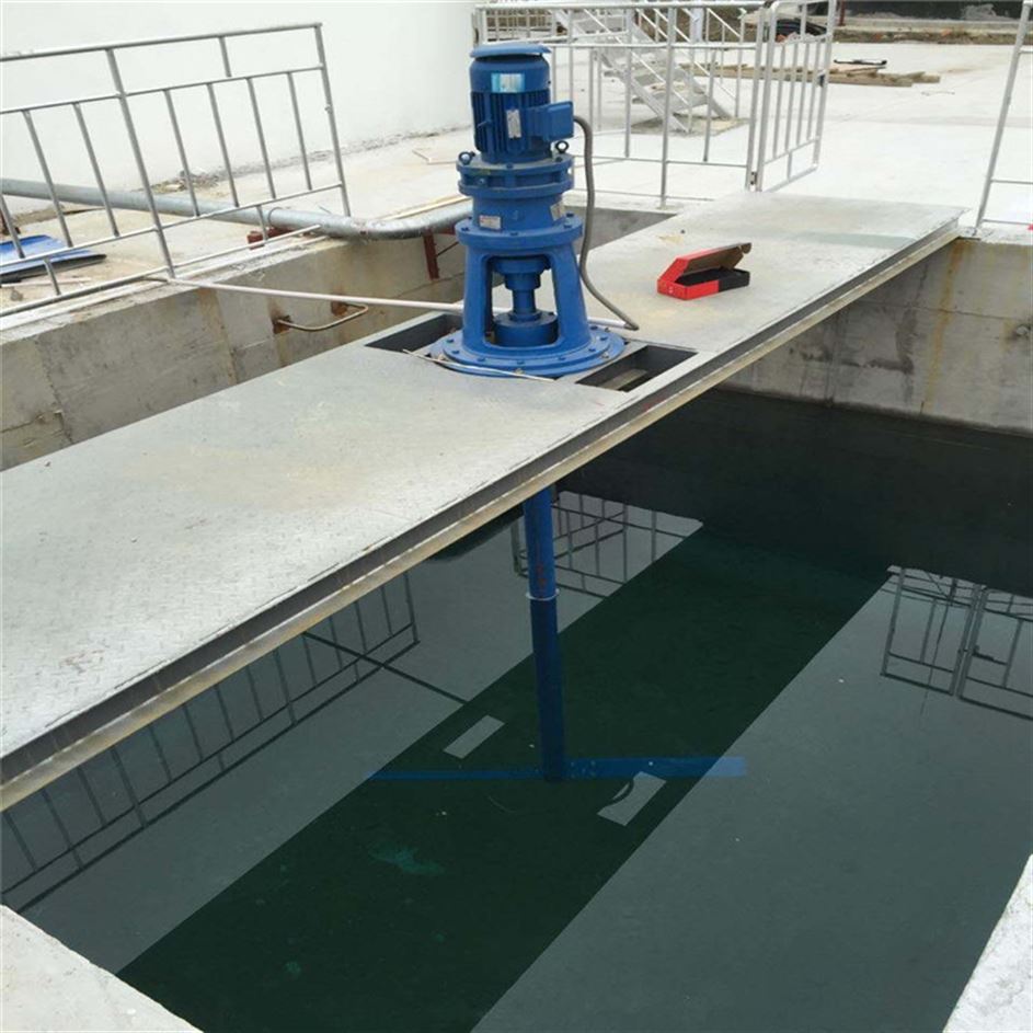 ⒊攪拌機的動力為潛水電機,應用時潛入液下工作,不僅冷卻條件好,適用深度范圍廣,而且不會產生噪聲等二次污染。